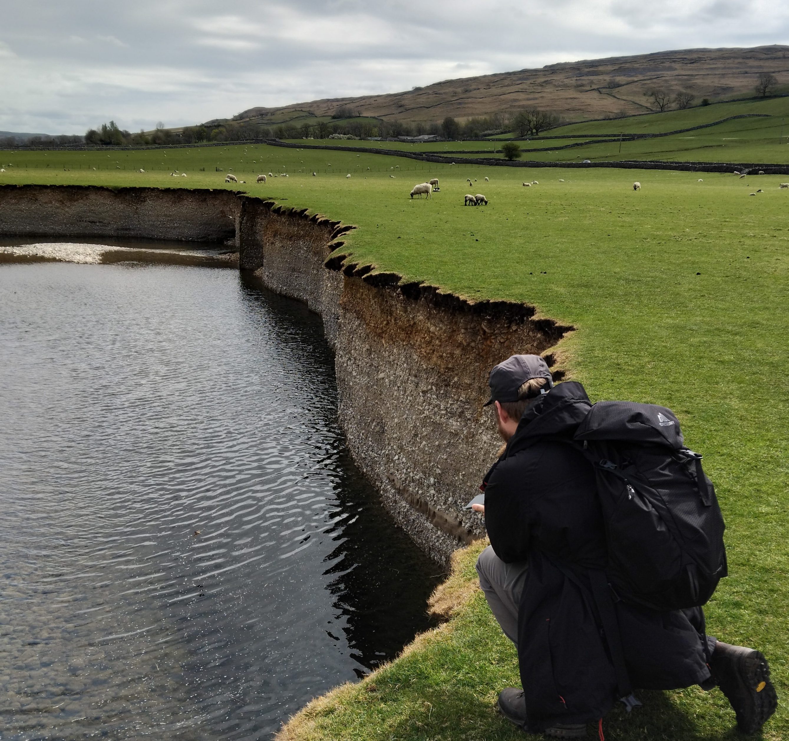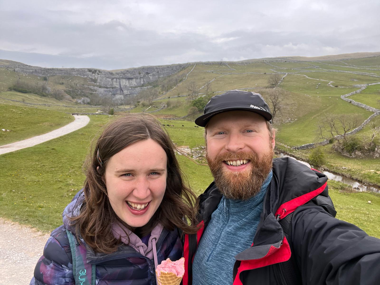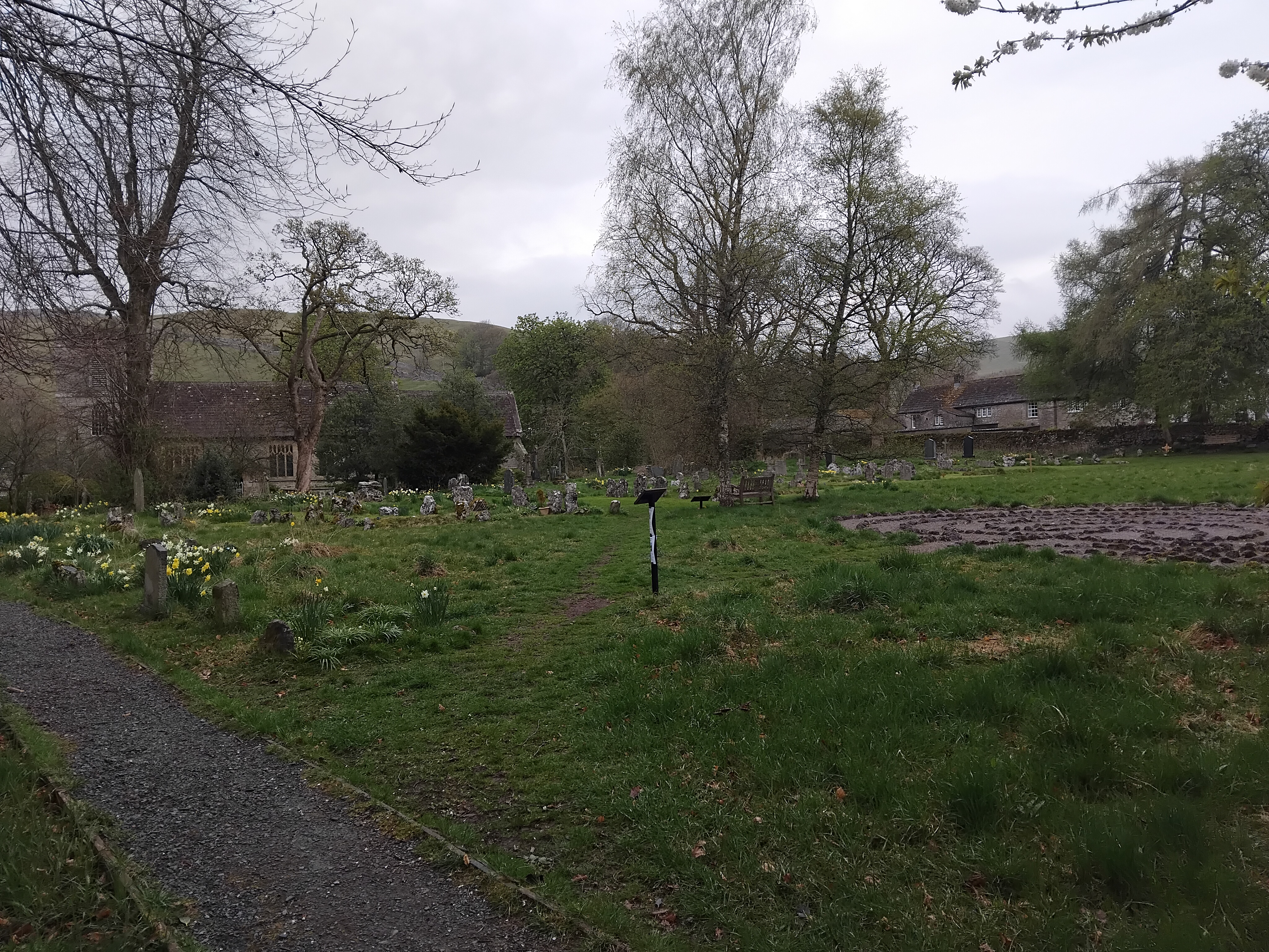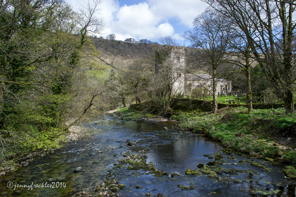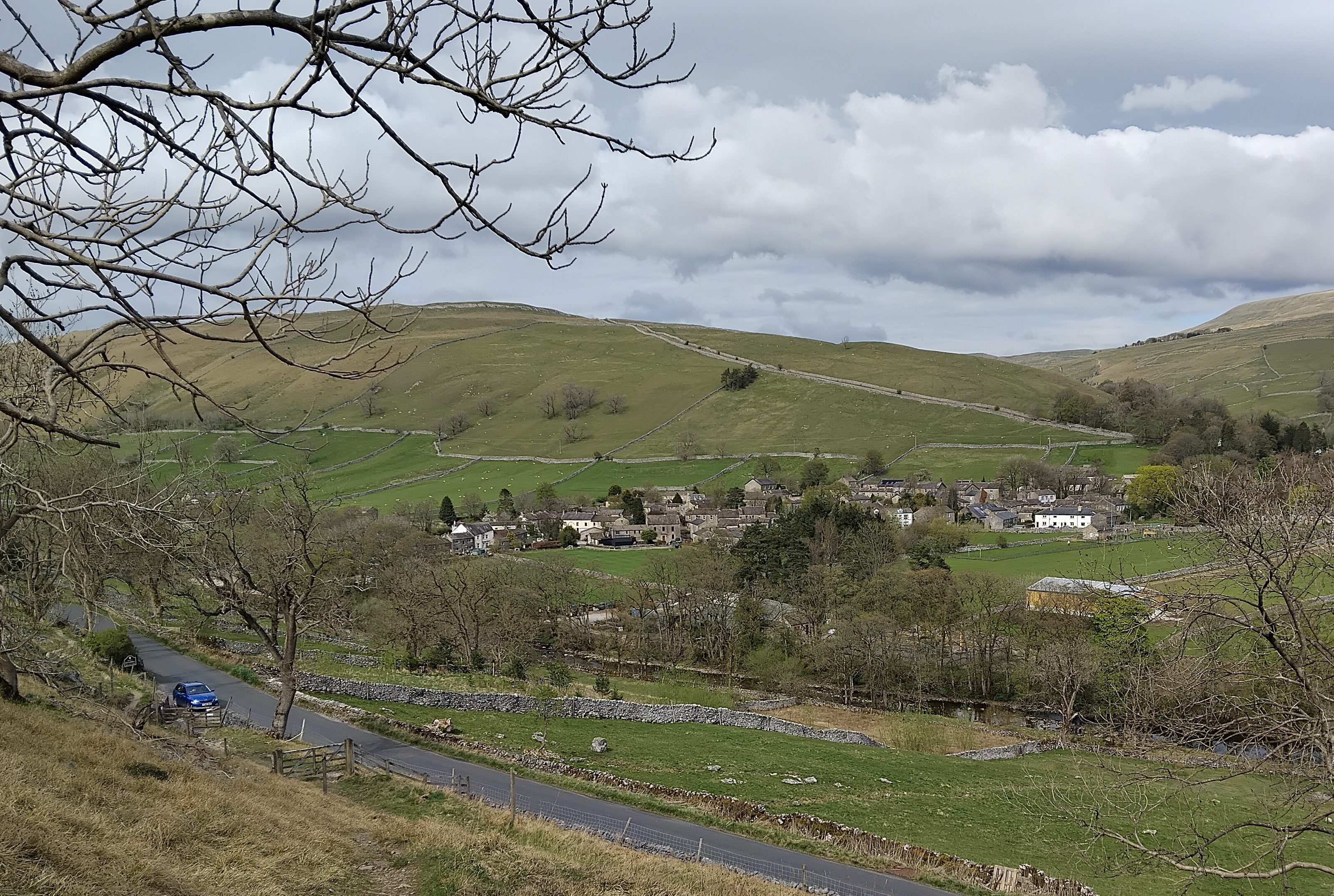The next day started with a walk over a stone scar on the hillside near Kettlewell (in Wharfedale) to Arncliff (in Littondale), taking us past limestone pasture, heather moor and riverside floodplain. Unlike the crowds at Malham Cove, we passed only a handful of people, despite the church in Arncliff — St Oswald’s, like the one we got married in — being used to film scenes in All Creatures Great and Small. It’s nestled into the slope of a hill, with a stream trickling by and a churchyard full of spring flowers. Arncliff was one of my favourite villages; built around a large village green with a timeless feel. On the return route, the steep riverbanks were alive with swallows nesting (hard to capture on camera despite our best attempts above).