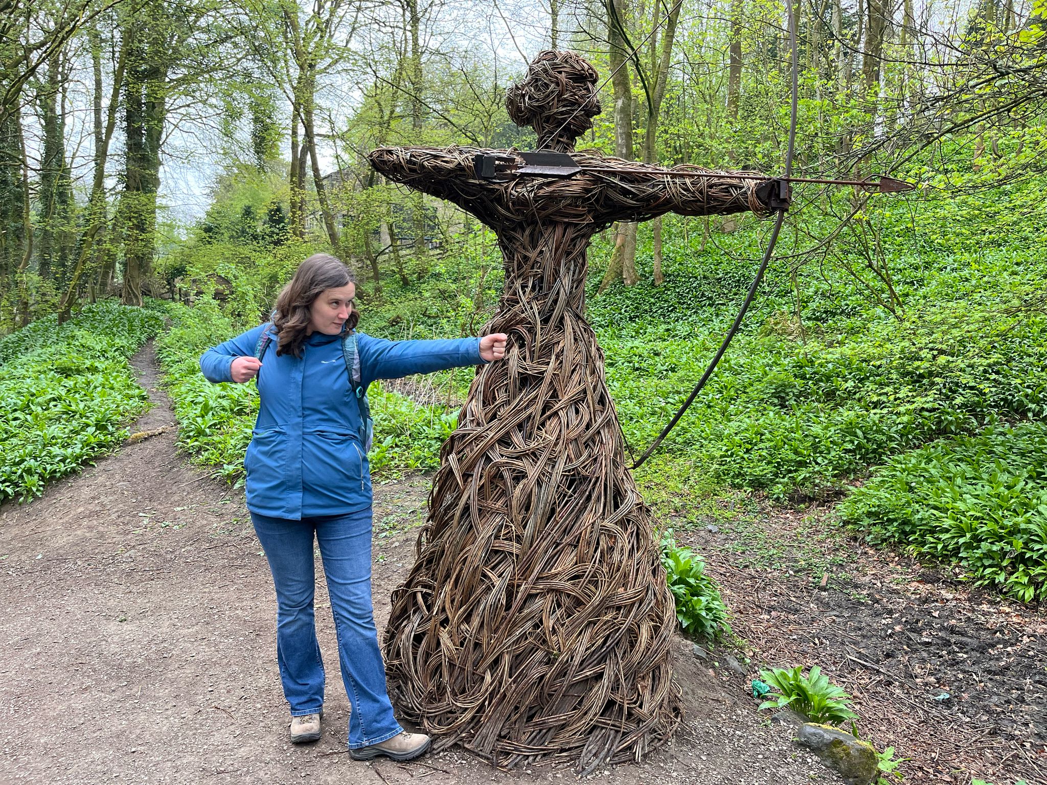 On our last day, we drove back via Skipton, known as the ‘Gateway to the Dales’. It’s a much bigger market town, with cobbled streets and a canal running through it. Once a famous mill town, it’s now best-known for its remarkably well-preserved medieval castle. The most striking features were the thick walls and the enchanting courtyard, dominated by a huge yew tree. A raised gangway between a beck and the old castle moat leads you to a Willow Structure that marks the start of Skipton Woods. Looking up, you see the castle perched on a rocky outcrop, much like a smaller version of Edinburgh Castle. What a walk to have on your doorstep if you live in Skipton!