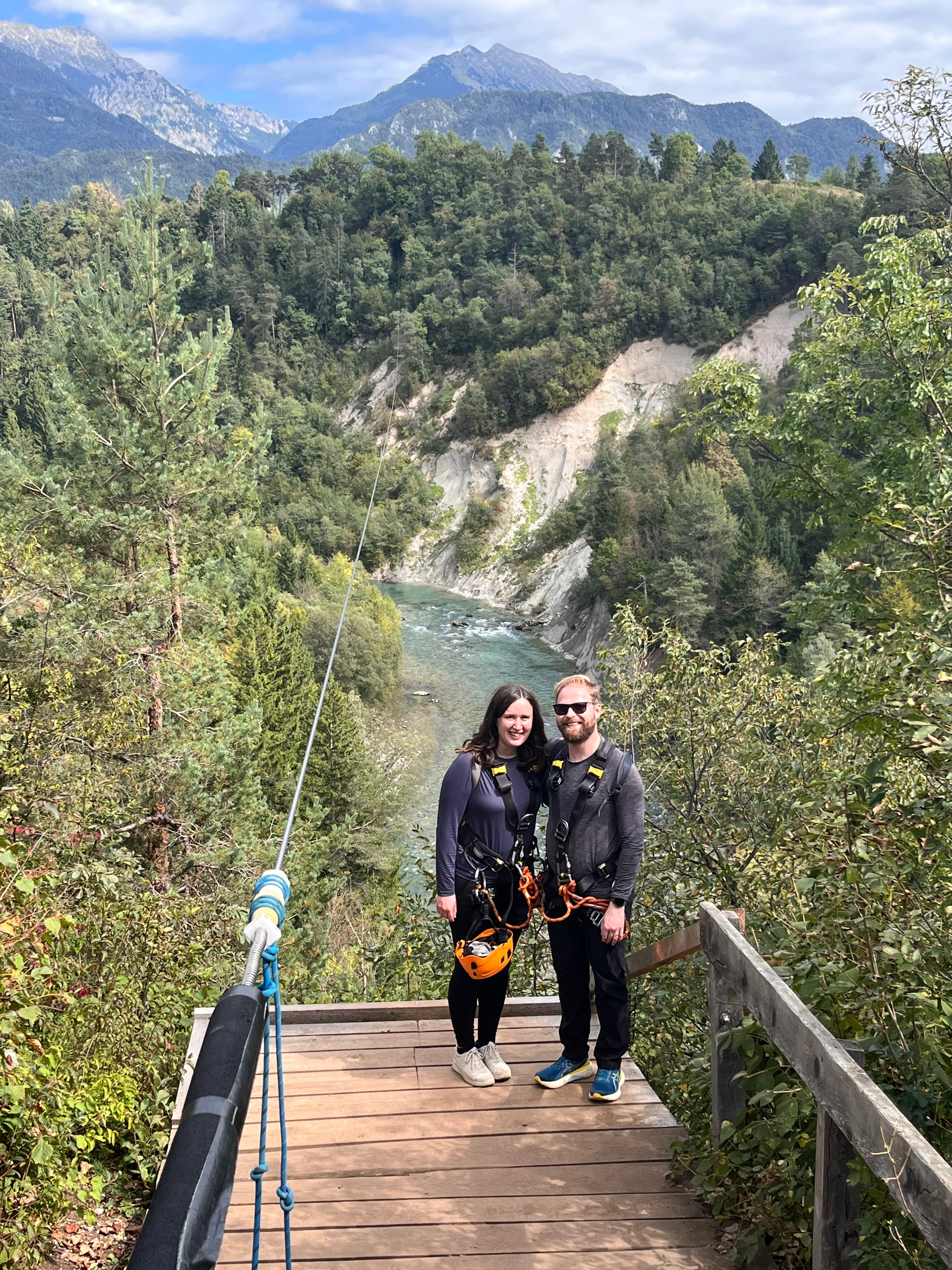 There were 10 people in our group, plus two student instructors (who zip between trees as their summer job). After a short safety briefing, you zip one by one back and forth across the Dolinka River. You can build up some speed (up to 40km/h), and the adrenaline really kicks in initially. Once you get the hang of it, though, looking around and seeing the Julian Alps on the horizon, Bled Castle in the distance, and the pristine spring water below is incredible – I almost wanted to slow the zipping down to really take in the stunning scenery! It was such a fun morning activity, and I can safely say that one of us loved it.